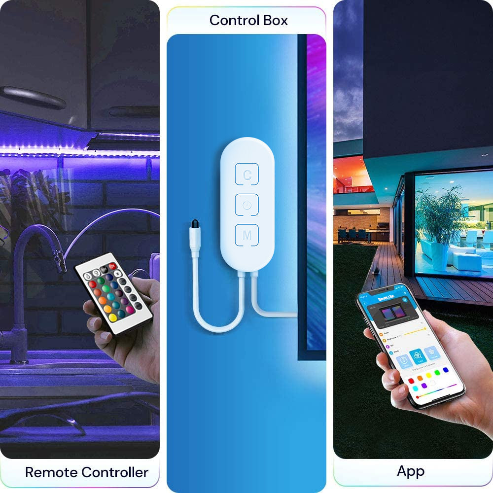 1. Voice Control, Works with Alexa, Google Assistant: exgreem Light Strip can free your hands to control the light. Use simple conversation starters to turn your lights on and off, set color, make them brighter. It is currently compatible with Echo & Google Home. [Not Support 5G WiFi]